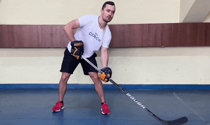 Sneakers, mat, hockey gloves, a few pucks, stick and cones